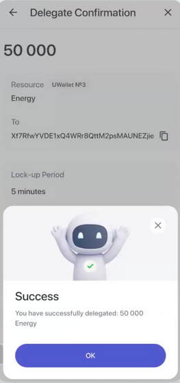 Delegation on the UCN blockchain allows you to transfer your resources, such as Energy and Bandwidth, to other users. By freezing your UCN coins, you gain these resources and can delegate them so that others can conduct transactions at a lower cost or even for free. You choose the duration for which you want to delegate the resources, and after this period, you can return them. This is a convenient way to help other network participants and optimize the use of your resources.