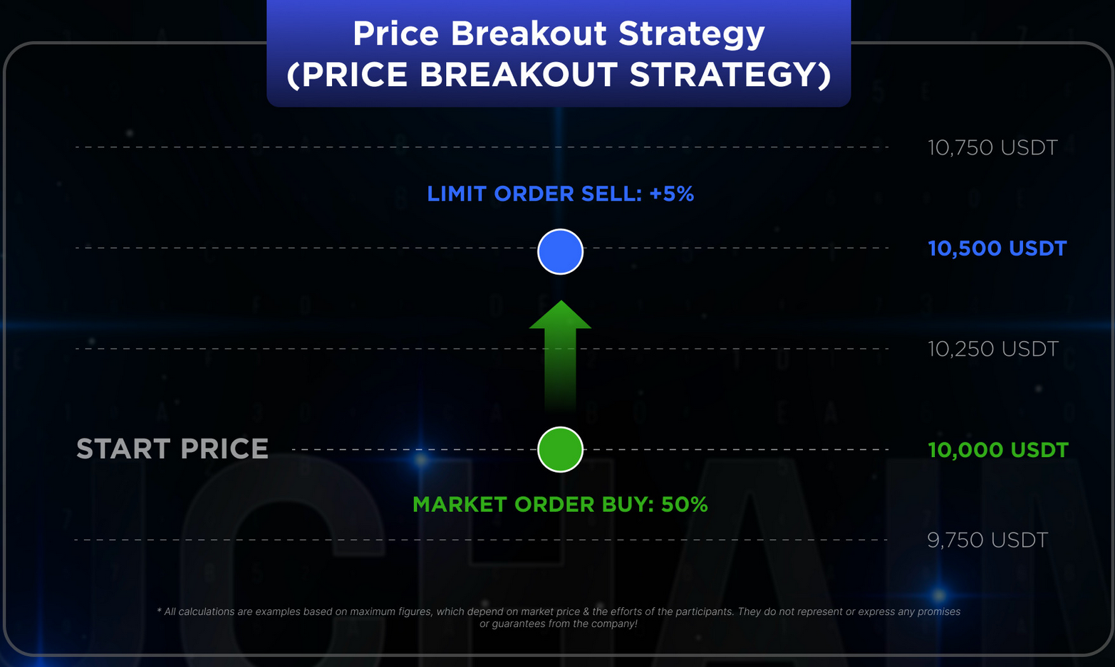 - If UCN = 10,000 USDT, it buys for 5,000 USDT and sells at 10,500 USDT.